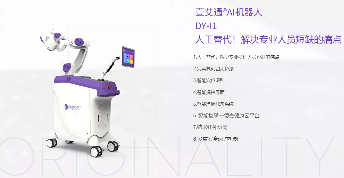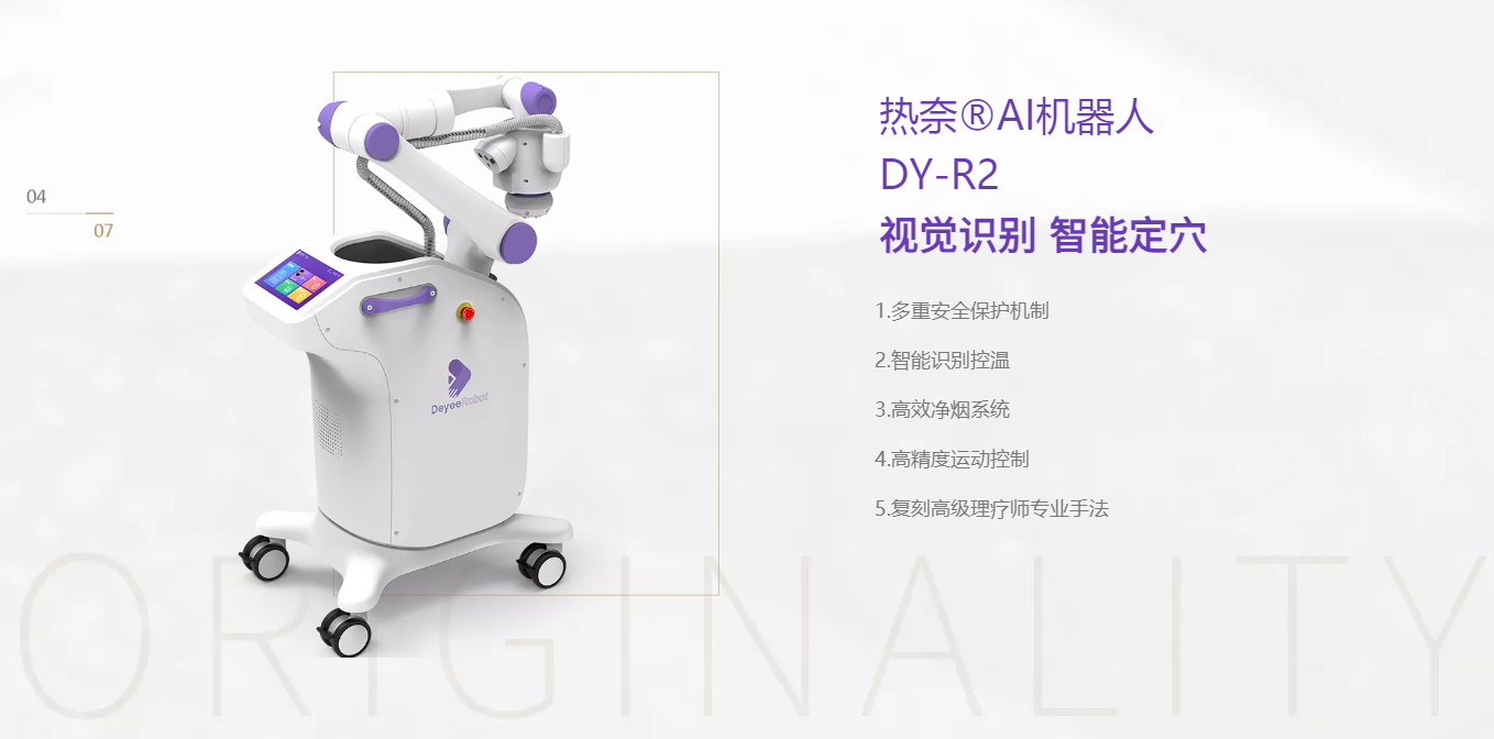 深圳市德壹医疗科技有限公司建设于2019年,,,,,是一家致力于人工智能算法、智能机械人系统研发、制造、销售和效劳于一体的全球领祖先工智能医疗机械人企业。。。。。。。公司在3D视觉算法、六维力控算法、人体穴位智能识别、医学理疗等方面掌握焦点手艺,,,,,完成了一套高效精准的AI机械人理疗解决计划。。。。。。。现在公司产品包括热奈AI理疗机械人、热能王AI砭石机械人、壹艾通AI艾灸机械人、攻击波AI理疗机械人等,,,,,普遍应用于医院康复理疗科、产后修复中心、中医门诊、美容康养机构等专业医疗机构和家庭,,,,,深受用户好评。。。。。。。德壹AI理疗机械人的产品在清静性、恬静度和准确性方面领先竞争敌手,,,,,出货量稳居市场领先职位。。。。。。。