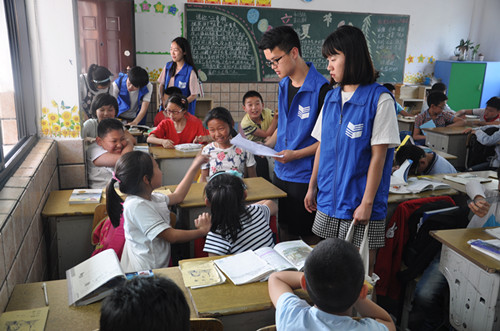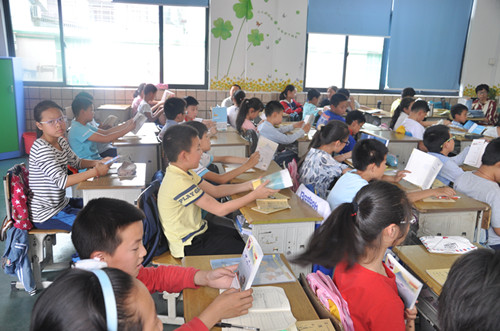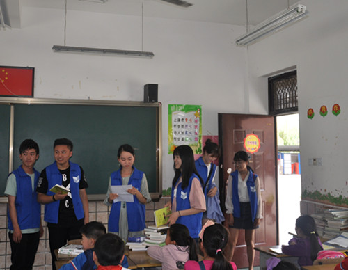 在俞家小学,,,,,,,自愿者团队受到师生的接待,,,,,,,在先生的协同下分为三组来到三个班级,,,,,,,向小朋侪们发放“心愿”书籍,,,,,,,陪同小朋侪看书、念书。。。。。。。。最后,,,,,,,在小朋侪欢笑与谢谢声中,,,,,,,运动圆满竣事。。。。。。。。