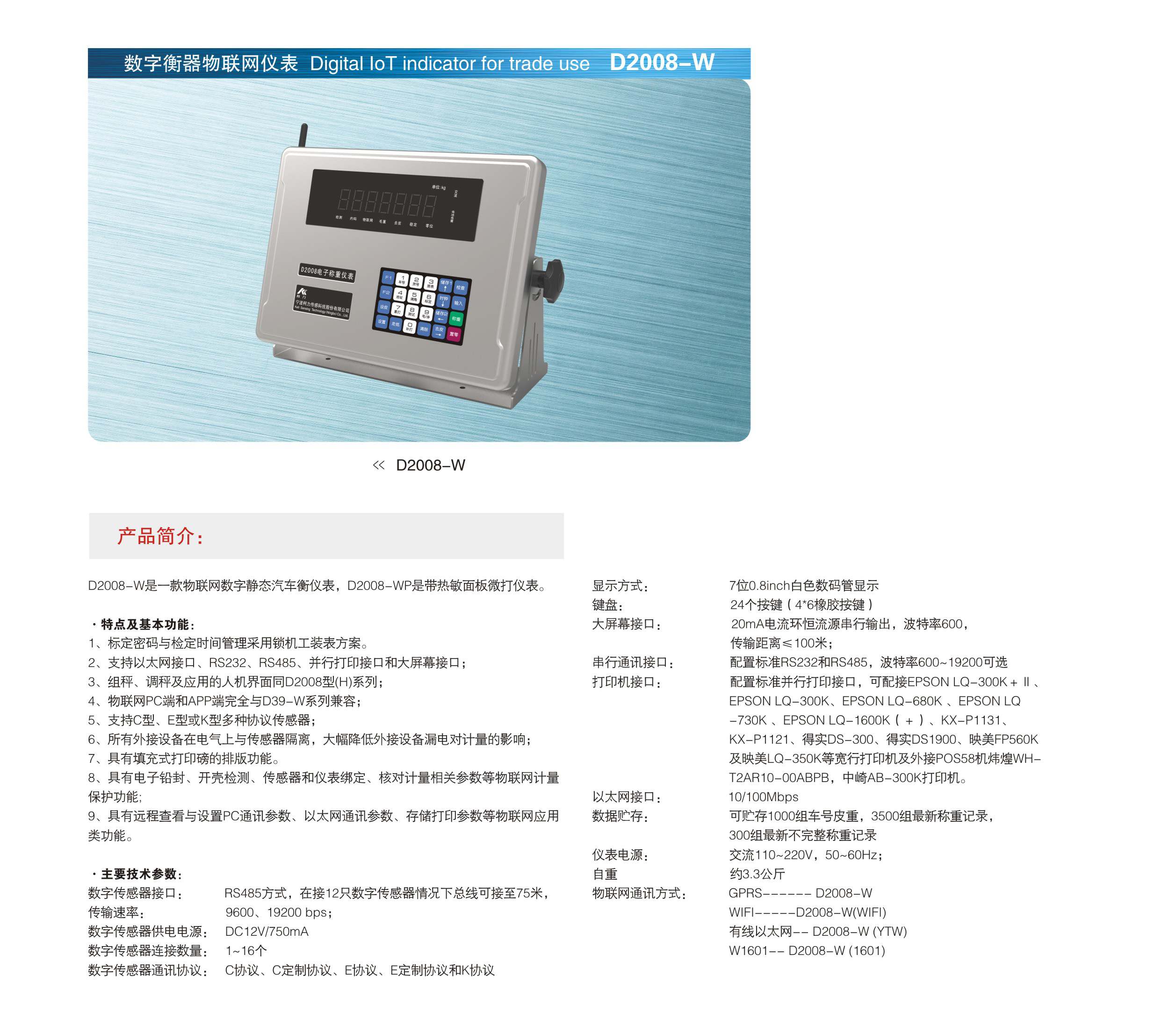 产品型号: 仪表 D2008-W